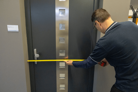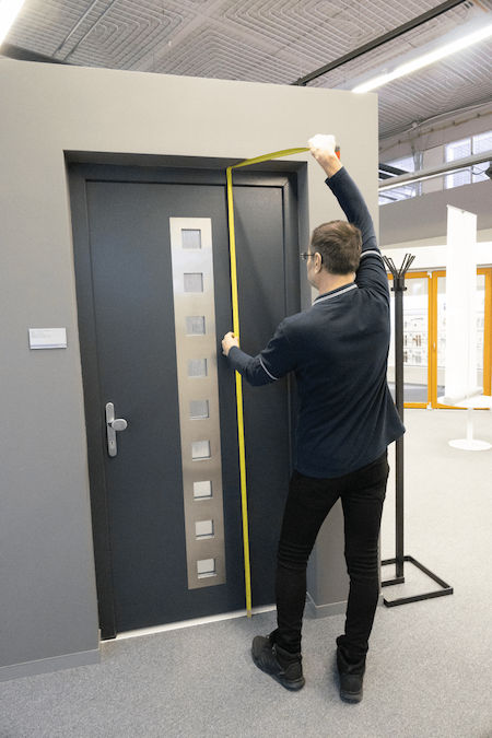 1.     Podobne ako pri oknách, aj pri dverách meriame šírku dverného otvoru tesne popri ráme pôvodných dverí vrátane zárubne kolmo od špalety na špaletu. Zaokrúhlime na centimetre.