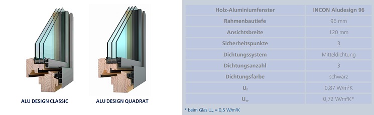 Holz-Aluminiumfenster INCON Aludesign 96 ist die Antwort auf immer größere Ansprüche an technische und ästhetische Vollkommenheit von Fenstern und auch maximale Energiesparung dazu. Diese Fenster verbinden perfekt ein überzeitliches klassisches Design des Holzfensters mit modernem Look des Aluminiumfensters. Die Verbindung von Holz und Aluminium bietet nicht nur vollkommener Look, sondern auch Formstabilität und hervorragende Wärmedämmungswert an.