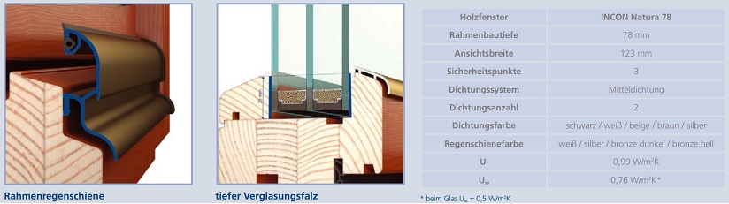 Holzfenster INCON Natura 78 mit Isolierglas mit 3 Scheiben erfüllt höhe Ansprüche an Energiesparen. Durch Anwendung einer einzigartigen Technologie der Tiefenimprägnierung liefern wir Fenster mit einem erhöhten Schutz nicht nur auf der Oberfläche, sondern auch bis tief in das Innere des Holzes. Fenster INCON Natura 78 ist eine gute Lösung für Energiesparhäuser und für Passivhäuser.