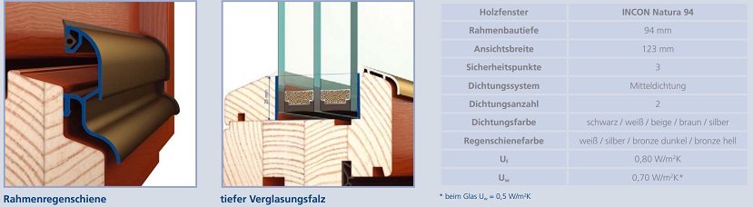 Holzfenster INCON Natura 94 verbinden perfekt Ihr Heim mit Natur. Die gewährleisten maximale Energiesparung und dank chemischer farbloser Tiefenimprägnierung, die bei den einzelnen Teilen noch vor dem Verpressen der Rahmen durchgeführt wird, Holzfenster INCON Natura 94 gegen Witterungseinflüsse und bestimmte Chemikalien beständig sind.