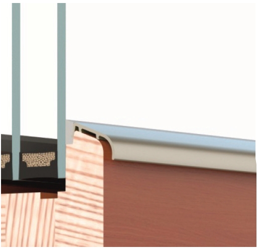 , Text:Tvarovaná zasklievacia lišta s presahom na zakrytie špáry profilu.