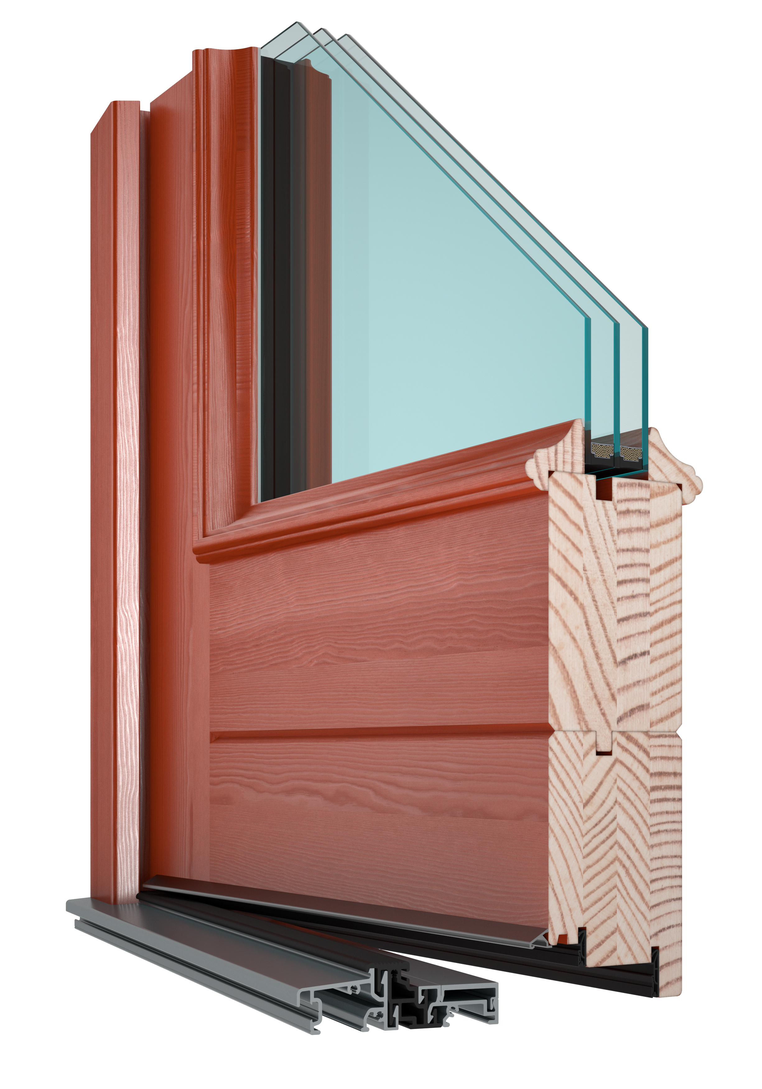 , Text:Elegantná tvarovaná zasklievacia lišta s presahom na zakrytie špáry krídla a profilu