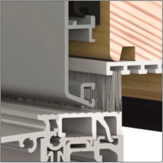 - hliníkový prah s prerušeným tepelným mostom, prah s dvomi dorazovými plochami pre tesnenie na krídle